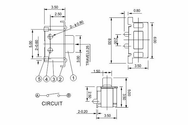 Location  Home -> Products  ->  Switch Series  ->  Tact Switch Series  ->  KFC-A36-03L