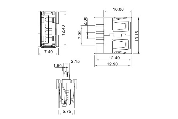 USB 2.0 connector AF 180-degree 10.0 short body straight insertion